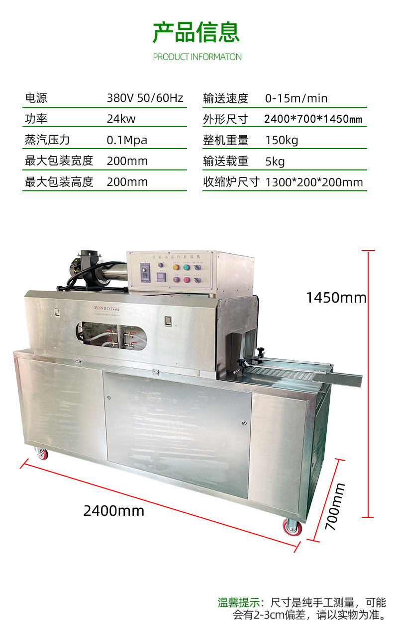 - 節能高效:優化的蒸汽產生和利用系統,有效降低了能源消耗,同時提高了收縮的速度和質量。