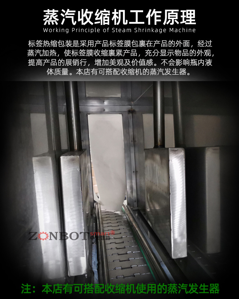 其工作方式通常為:將預(yù)先套好收縮膜的產(chǎn)品放置在蒸汽收縮機的輸送帶上,當(dāng)產(chǎn)品進入收縮區(qū)域時,高溫蒸汽均勻地噴射在收縮膜上,促使膜材料迅速收縮并緊密貼合在產(chǎn)品表面,完成包裝過程。