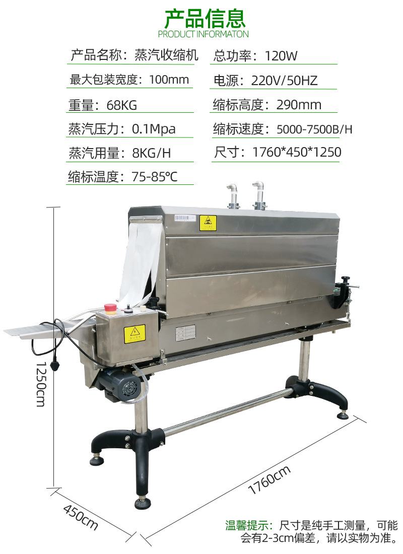 綜上所述,蒸汽收縮機在現(xiàn)代包裝行業(yè)中具有重要地位,為各行業(yè)的產(chǎn)品包裝提供了高效、可靠的解決方案。