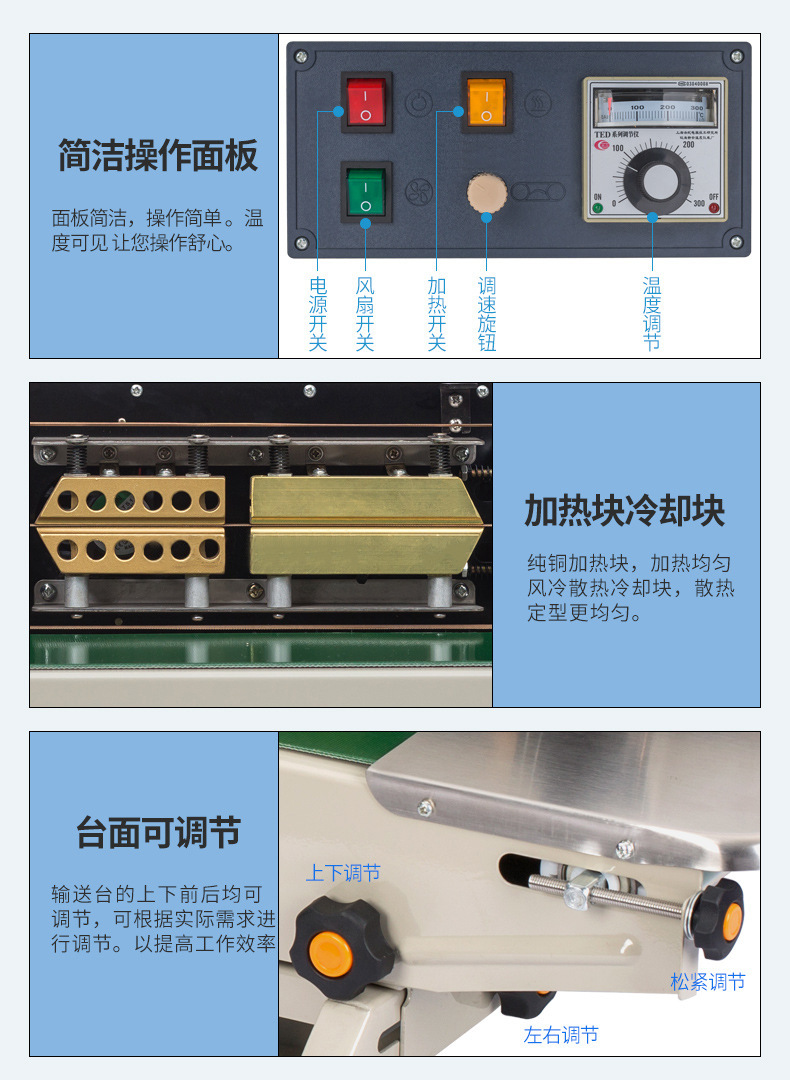 - 高效連續封口:能夠以較高的速度連續對物品進行封口,大大提高了生產效率。適合大規模生產和流水線作業。