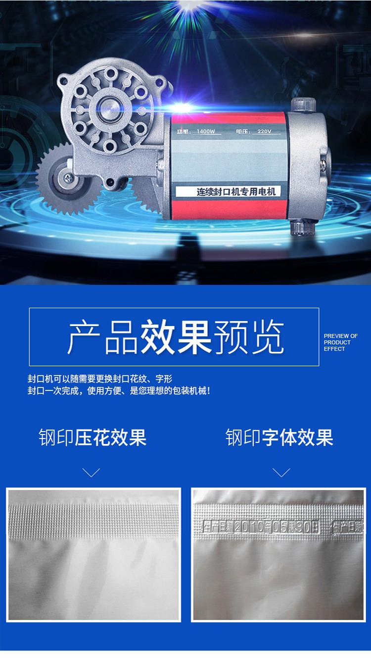 - 節(jié)省人力和時(shí)間成本:它的自動(dòng)化程度較高,在連續(xù)封口過程中,只需要少量的操作人員進(jìn)行監(jiān)控和簡(jiǎn)單的操作,如添加包裝材料、調(diào)整參數(shù)等。相比手工封口或者半自動(dòng)化的封口方式,大大節(jié)省了人力成本,并且能夠在更短的時(shí)間內(nèi)完成大量的封口任務(wù),提高了生產(chǎn)效率,降低了生產(chǎn)成本。