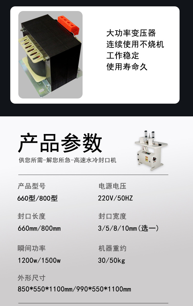 水冷封口機確保包裝材料的封口部位平整、干凈,沒有褶皺或雜質,以免影響封口質量