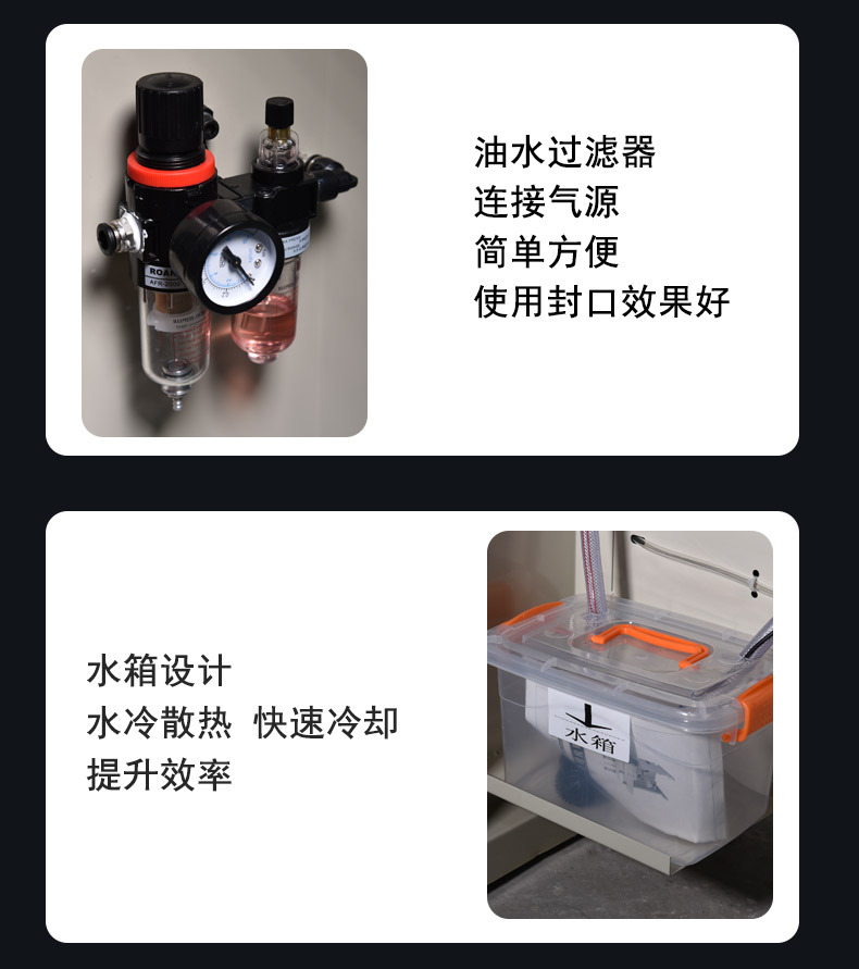 - 防止燙傷:水冷封口機的加熱元件在工作時溫度很高,在設備運行過程中,不要觸摸加熱元件及其周圍區域,避免被燙傷。即使設備停止工作后,加熱元件可能還會有一段時間處于高溫狀態,也要保持警惕。