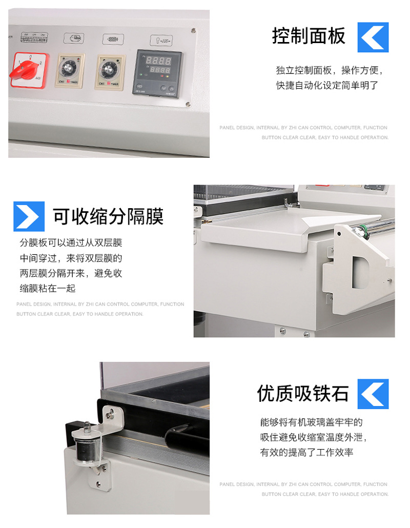 - 工作原理:熱風循環加熱系統主要由加熱元件、風機和循環風道等組成。加熱元件將空氣加熱,風機使熱空氣在收縮室內循環流動,通過熱空氣與薄膜的充分接觸來實現加熱收縮。
