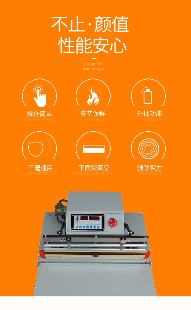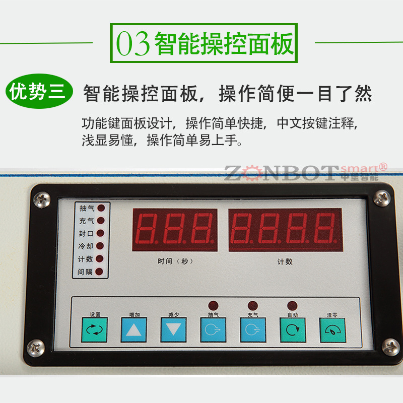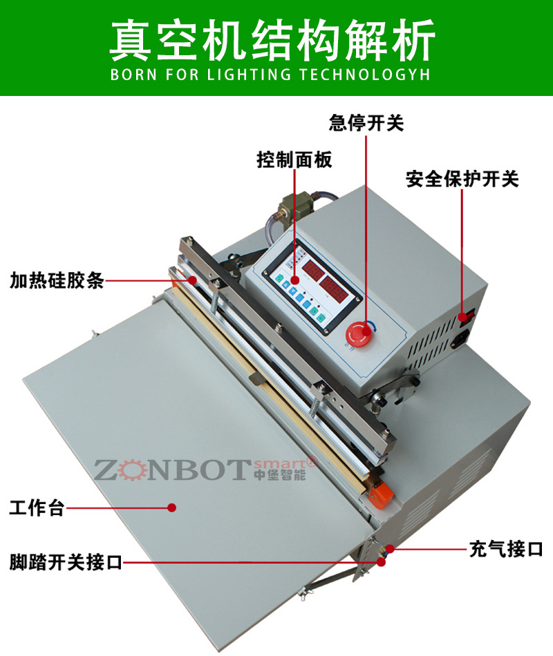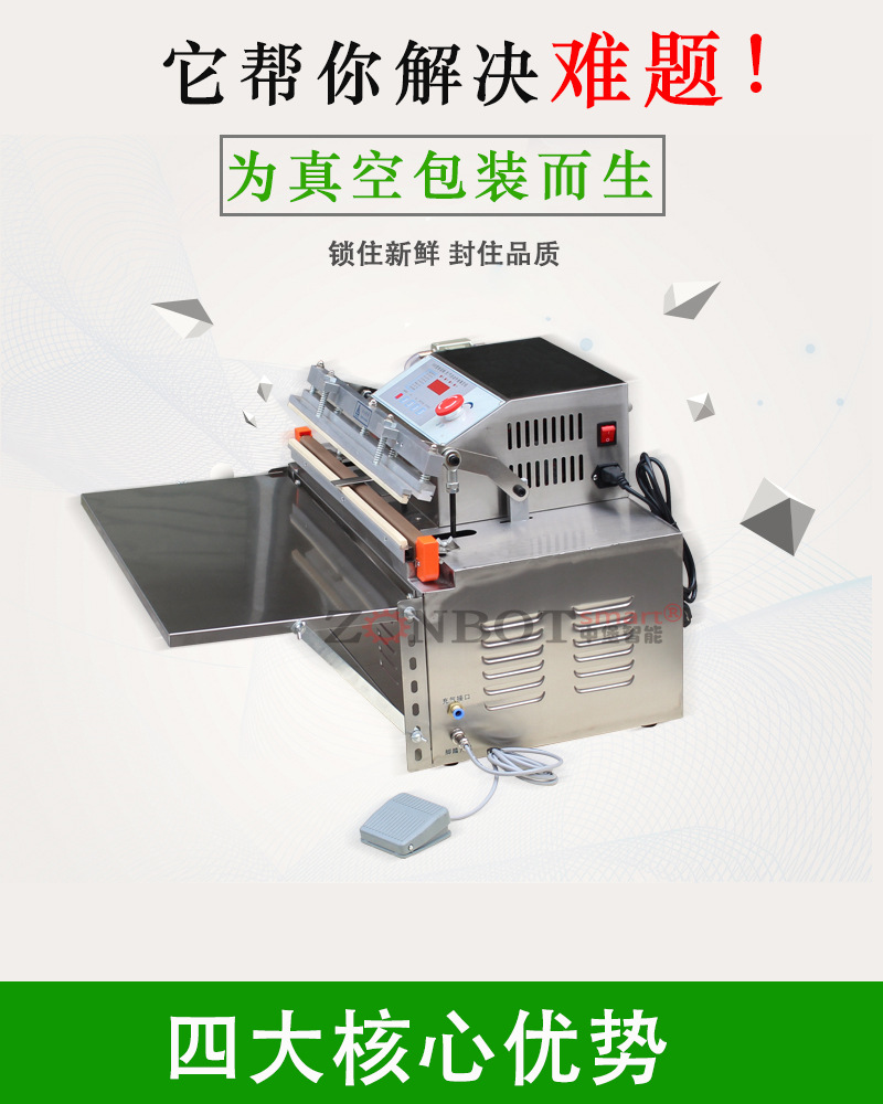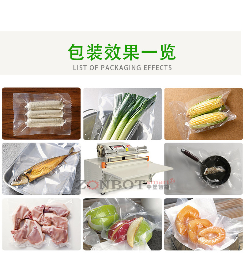 真空包裝機(jī)能夠自動抽出包裝袋內(nèi)的空氣,達(dá)到預(yù)定真空度后完成封口工序。亦可再充入氮?dú)饣蚱渌旌蠚怏w,然后完成封口工序。真空包裝機(jī)常被用于食品行業(yè),因?yàn)榻?jīng)過真空包裝以后,食品能夠抗氧化,從而達(dá)到長期保存的目的。
