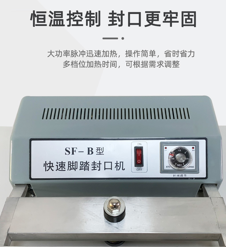 此外,?腳踏封口機(jī)還適用于各種塑料薄膜、?復(fù)合薄膜及鋁塑薄膜的封合,?廣泛應(yīng)用于食品、?土特產(chǎn)、?糖果、?茶葉、?醫(yī)藥、?五金等行業(yè)。?這種設(shè)備的操作簡單,?加熱時間可調(diào),?接通電源即可工作,?使得它在商店、?家庭、?工廠等環(huán)境中成為方便且經(jīng)濟(jì)的封口解決方案