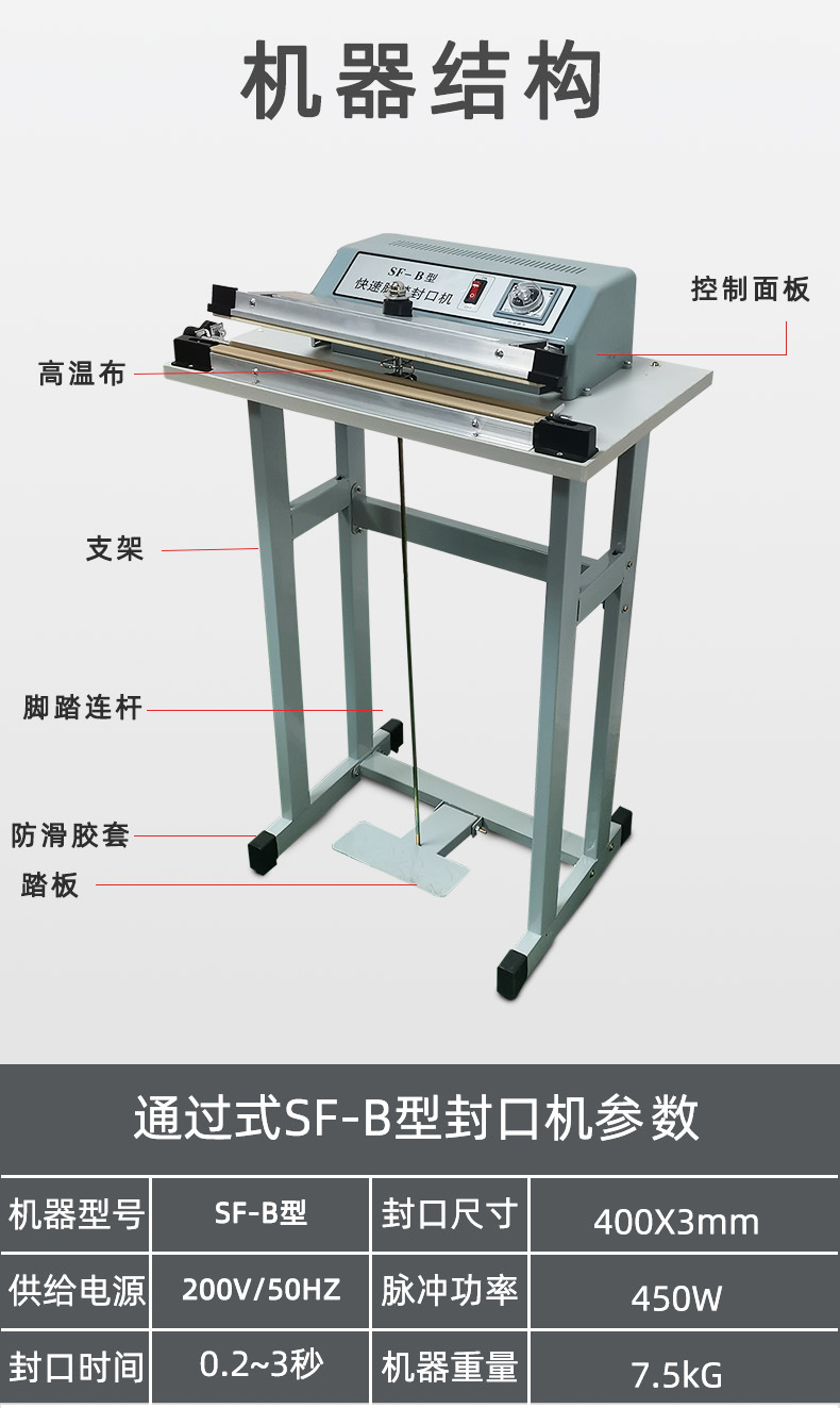 腳踏封口機(jī)是一種理想的封口設(shè)備,?適用于各種塑料袋薄膜的封口及制袋。?它特別適用于醫(yī)藥、?農(nóng)藥、?食品、?日化、?潤滑油等行業(yè)的鋁箔袋、?塑料袋、?復(fù)合袋的封口。?這種設(shè)備利用電氣脈沖技術(shù),?能夠顯著縮短封口時間,?從原來的2-4秒縮短至0.2秒,?具有投資少、?效益高、?封口長度長、?操作簡單等特點。?因此,?腳踏封口機(jī)被廣泛應(yīng)用于食品、?醫(yī)藥、?土特產(chǎn)、?電器軟件、?工廠、?商店、?服務(wù)行業(yè)等領(lǐng)域,?成為這些行業(yè)中不可或缺的封口設(shè)備