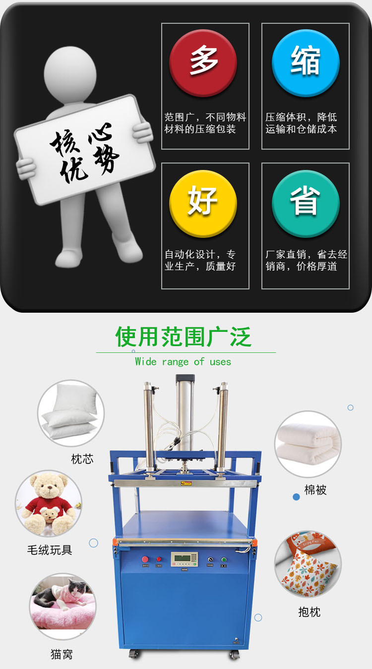 壓縮包裝機適用的包裝袋材質是PA+PE,?即尼龍+聚乙烯。?這種高覆膜材質,?也就是高強度復合膜,?保證了包裝袋不漏氣,?同時具有良好的耐用性。?這種材質是當前國內壓縮袋行業中最好的材質之一,?雖然它的缺點是感覺有點硬,?但這正是優質壓縮袋的保證。?相比之下,?PVC材質不環保,?而MOPE的粘合性不好,?容易導致漏氣,?雖然其柔軟性較好,?但綜合來看,?PA+PE材質的包裝袋更適合用于壓縮包裝機,?因為它能夠有效地保證不漏氣,?同時具有良好的耐用性