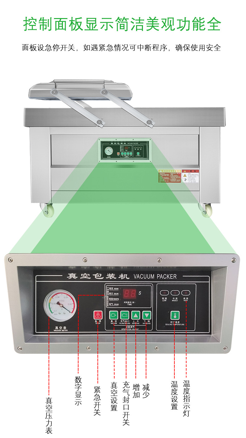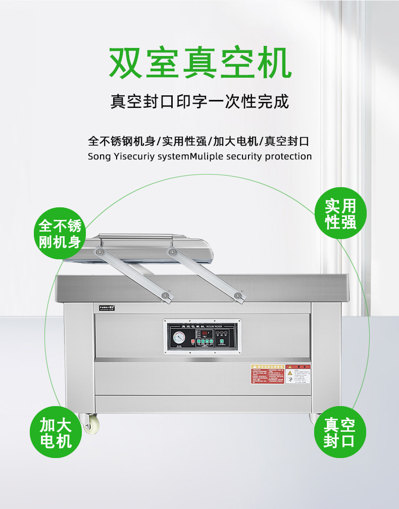 雙室真空包裝機(jī)是一種包裝設(shè)備,其主要功能包括真空包裝和充氣包裝。這種設(shè)備通過(guò)將包裝袋內(nèi)的空氣抽出,達(dá)到預(yù)定真空度后完成封口工序,從而實(shí)現(xiàn)食品和其他商品的防腐、保質(zhì)、防潮、防霉、防銹、防蝕、防蟲、防污染等目的