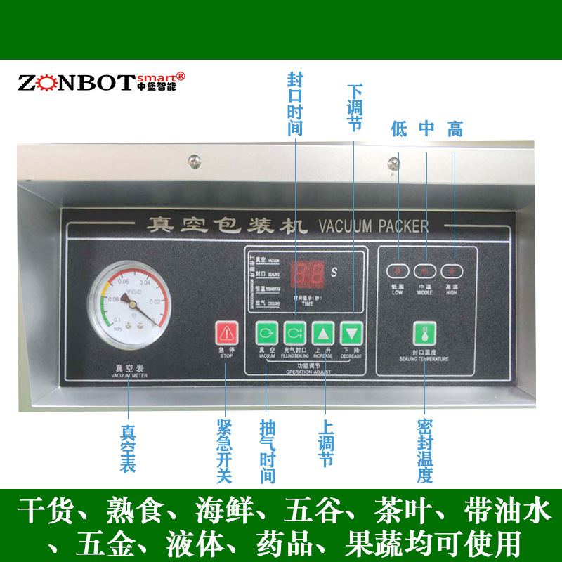 外抽真空包裝機通過抽氣嘴放入被包裝物的包裝袋內,?抽空空氣后完成封口,?實現了抽真空包裝的全自動化。?這種機器采用了國際先進的控制技術,?具有自動定型包裝袋、?抽真空等功能,?從而使產品具有外觀美觀、?保鮮、?防變質和延長儲存時間等特點。?外抽式真空機特別適用于食品、?藥物、?土特產、?電子元件、?服裝等進行真空、?封口包裝,?不受包裝物大小及體積的限制,?任意進行真空包裝。?其適用范圍廣泛,?經濟效益高,?使用方便,?能夠有效地防止物料的迅速氧化和抑制好氧性細菌的繁殖所引起的物料腐敗和變質。?